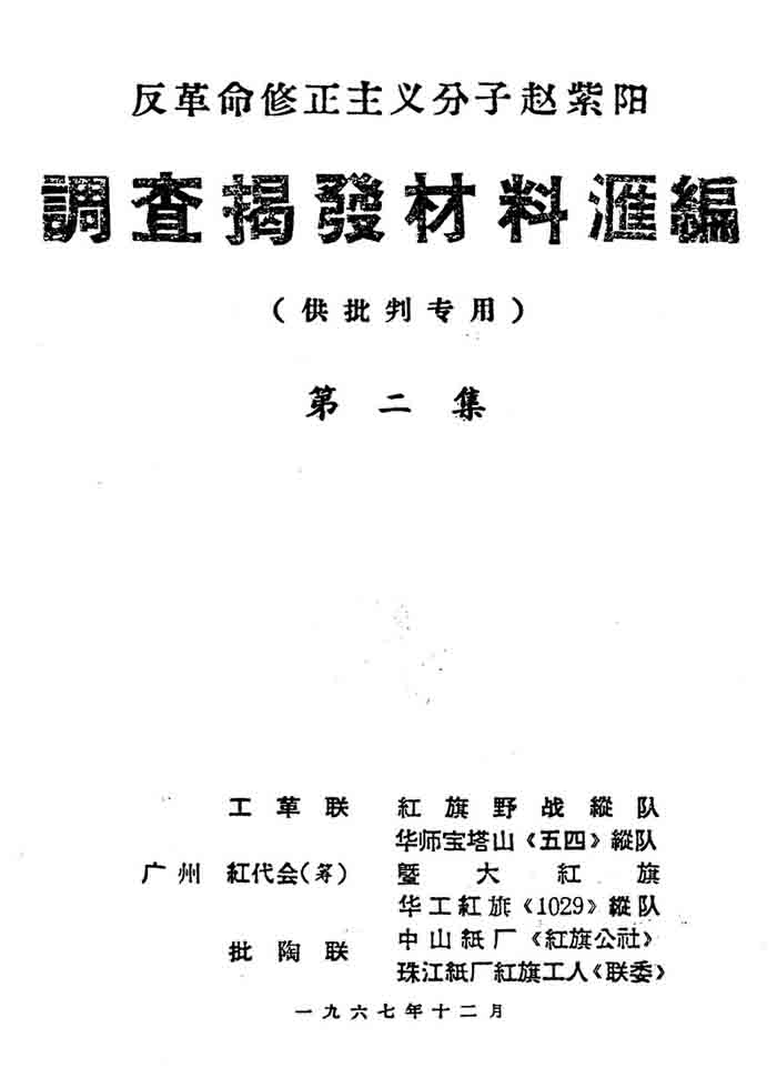 [/blockquote][blockquote]反革命修正主义分子赵紫阳调查揭发材料汇编(供批判专用)第二集