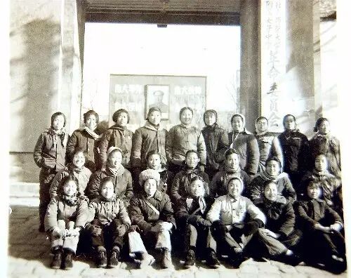 欢送四位同学开赴黑龙江兵团,部分同学在学校门口的留影。闻佳(前排左一)